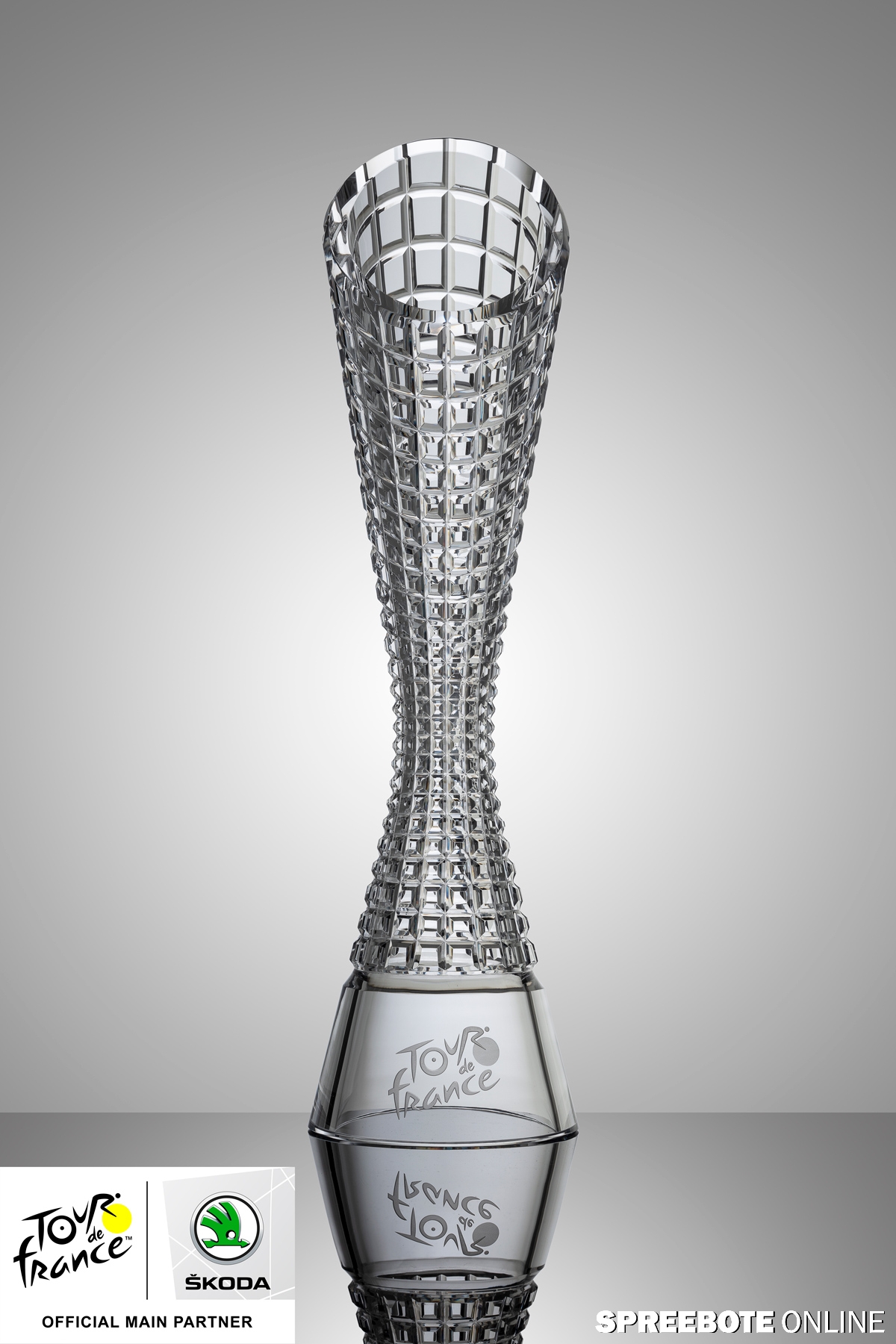| Wenn die Teilnehmer der 107. Auflage der Tour de France am 20. September die berühmte Avenue des Champs-Elysées in Paris erreichen, stehen auch die Gewinner der einzelnen Wertungen fest. Für die Gestaltung der Siegerpokale zeichnet dieses Jahr bereits zum zehnten Mal in Folge die Škoda Designabteilung verantwortlich. Škoda AUTO Vorstand für Vertrieb und Marketing Alain Favey wird die Trophäe für den Gewinner der Punktewertung überreichen. Škoda Designer Peter Olah betont: „Bei der Gestaltung der Trophäen für die Sieger der Tour de France haben wir uns dieses Jahr erneut von der traditionellen böhmischen Kristallglaskunst inspirieren lassen. Ein minimalistisches geometrisches Muster vermittelt den Eindruck, der Pokal wachse aus sich selbst heraus. Bereits seit 2011 entwerfen wir das Design der Pokale, die inzwischen zu einem echten Markenzeichen der Tour de France geworden sind.“ Dieses Jahr prägt ein Muster aus Rechtecken, die von unten nach oben größer werden, die 60 Zentimeter hohen und vier Kilogramm schweren Trophäen aus grünem und klarem Glas.