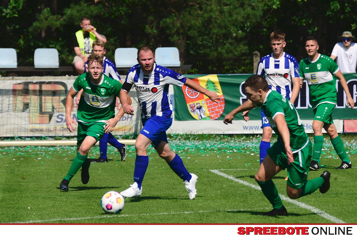 Und schon folgte der Anstoß der Partie zwischen dem FV Blau Weiß Briesen und der SG Müncheberg. Beide Mannschaften schenkten sich nichts und waren schwer auf Draht. Ob durch die Mitte oder über die Flügel, so richtig hatte keiner ein wirksames Mittel, um beim Gegner zwingend zu werden. Erst ab der 29. Minute mit Tim Sowinski nahm das Spiel eine Wendung. Briesen ging nun verstärkt in die Offensive und Jonas Kwast schoss den Ausgleich zum 1:1. Die Freude über den geglückten Ausgleich währte nicht lang, denn Nico Helm brachte Müncheberg kurz vor der Pause abermals in Führung zum 2:1. Briesen stand weiter unter Druck. Die Fehlerquoten häuften sich auf der Briesener Seite, sodass der Gast seine Vorteile sah und reagierte. Eric Lindemann machte in der 52. und 65. das 3:1 und 4:1. Für Briesen wurde es jetzt langsam Zeit, den vielen Zuschauern auch mal zu zeigen, was in ihnen steckt. Sie bündelten ihre Stärken und schon schien es aufwärts zu gehen. In der 77. Minute, machte Arsalan Mohamadi das 4:2. Den Silberstreifen am Horizont sehend, machte allerdings die SG wieder von sich reden, als sie in der 80. Minute durch Fabian Hirsch doch glatt zum 5:2 einlochte und damit in Führung ging. Da brachte das dritte Tor von Horst Nico Laube in der 87. Minute nicht viel Entspannung. Nach 90 Minuten auf dem Sportplatz ging die SG Müncheberg im Hitze Duell vom Platz. Am Samstag um 15 Uhr sieht man sich schon wieder zum Landespokal Brandenburg in Müncheberg.