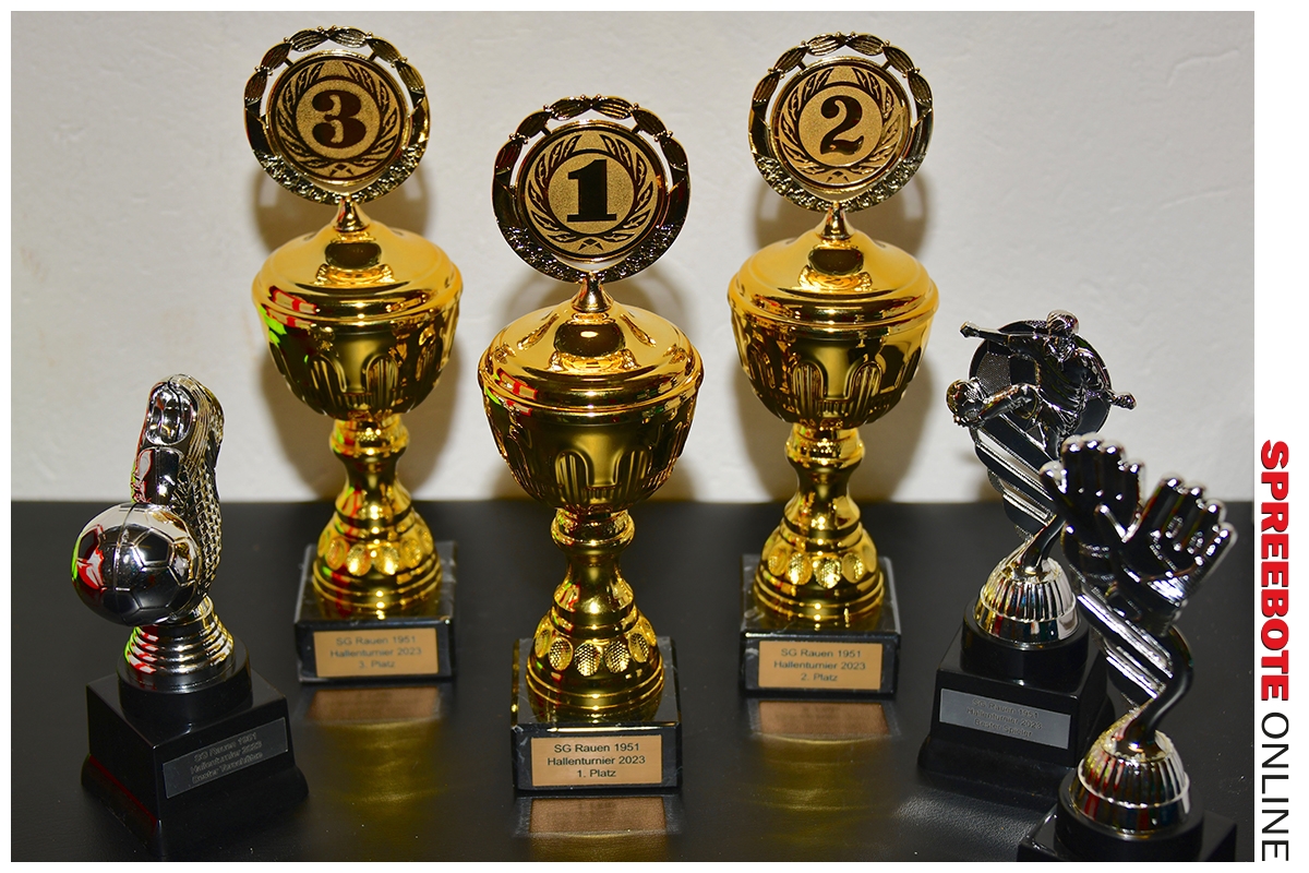 Man kann es nicht oft genug sagen: Endlich ist wieder alles möglich! Die kurze Saison der Fußball-Hallen-Turniere hat begonnen und viele Vereine der Region lassen es in den Arenen so richtig laut krachen. Die SG Rauen, die leider ja noch keine Sporthalle in solch einer Größe hat, hat ihren 2. Rauener Hallen Cup in Bad Saarow in der Scharmützelsee-Halle veranstaltet. Acht Mannschaften, die um die Pokale kämpften, waren in Fan- und Mannschaftsstärke angereist. Die SG Rauen stellte gleich zwei Teams, mit dazu kamen die Oderbruchkicker, der Storkow SC II, Lok Frankfurt/Oder, die Borussia Fürstenwalde, die SG Lichtenow/Kagel und die SG Müncheberg II. Gut durchorganisiert begann das Turnier um 18 Uhr, alle Spiele fanden im 10-Minuten-Takt statt. Außer in den Finalrunden gab es noch 2 Minuten dazu. Spannend waren alle Spiele von der ersten Minute an. Jede der Mannschaften hatten für sich einen Plan, in jedem Falle die Nummer eins zu werden. Höchste Anspannung gab es dann doch im finalen Spiel zwischen Borussia Fürstenwalde und Müncheberg II – es ging um den 1. Platz. Beide wollten gewinnen und fighteten um jede Möglichkeit. Der Gleichstand brachte das 7-Meter-Schießen, beide Torhüter lieferten mit Bravour ab, so dass es 10 Tore andauerte, bis klar war, dass Müncheberg II der Sieger des 2. Rauener Hallen Cup ist.