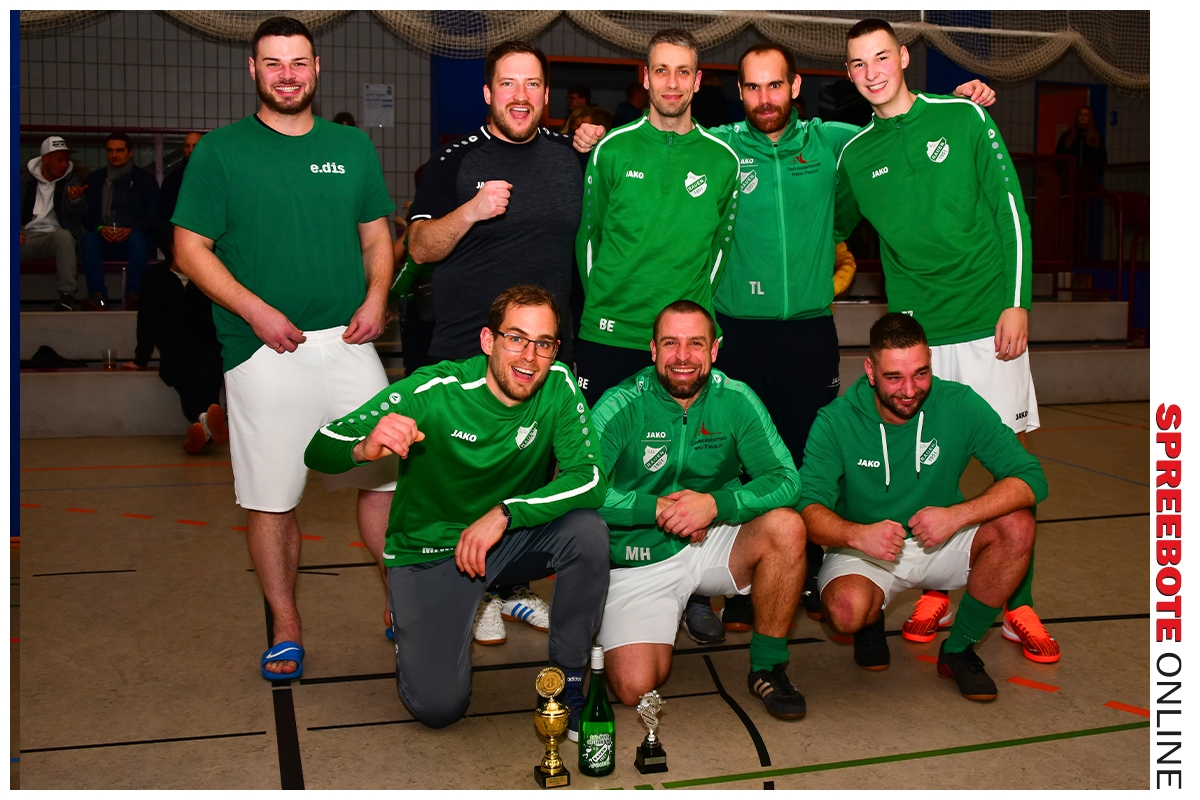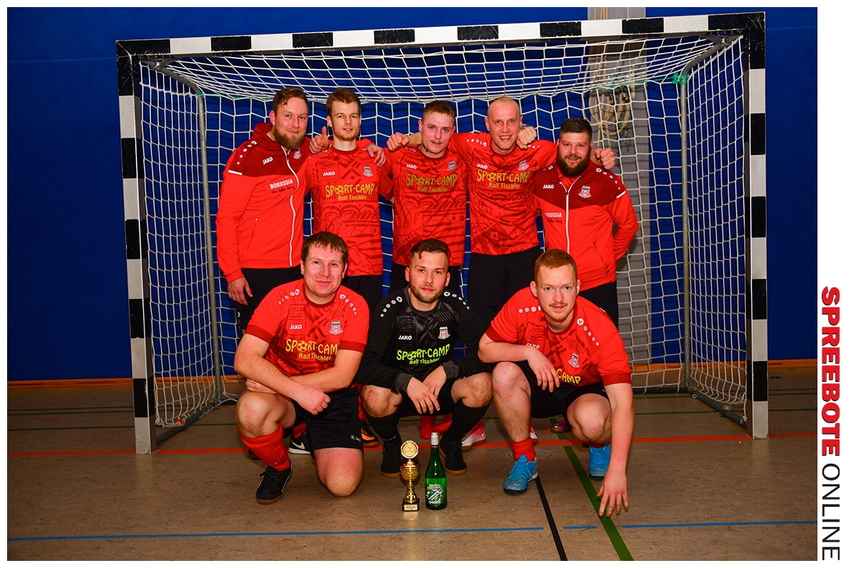 Man kann es nicht oft genug sagen: Endlich ist wieder alles möglich! Die kurze Saison der Fußball-Hallen-Turniere hat begonnen und viele Vereine der Region lassen es in den Arenen so richtig laut krachen. Die SG Rauen, die leider ja noch keine Sporthalle in solch einer Größe hat, hat ihren 2. Rauener Hallen Cup in Bad Saarow in der Scharmützelsee-Halle veranstaltet. Acht Mannschaften, die um die Pokale kämpften, waren in Fan- und Mannschaftsstärke angereist. Die SG Rauen stellte gleich zwei Teams, mit dazu kamen die Oderbruchkicker, der Storkow SC II, Lok Frankfurt/Oder, die Borussia Fürstenwalde, die SG Lichtenow/Kagel und die SG Müncheberg II. Gut durchorganisiert begann das Turnier um 18 Uhr, alle Spiele fanden im 10-Minuten-Takt statt. Außer in den Finalrunden gab es noch 2 Minuten dazu. Spannend waren alle Spiele von der ersten Minute an. Jede der Mannschaften hatten für sich einen Plan, in jedem Falle die Nummer eins zu werden. Höchste Anspannung gab es dann doch im finalen Spiel zwischen Borussia Fürstenwalde und Müncheberg II – es ging um den 1. Platz. Beide wollten gewinnen und fighteten um jede Möglichkeit. Der Gleichstand brachte das 7-Meter-Schießen, beide Torhüter lieferten mit Bravour ab, so dass es 10 Tore andauerte, bis klar war, dass Müncheberg II der Sieger des 2. Rauener Hallen Cup ist.