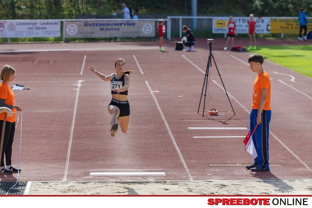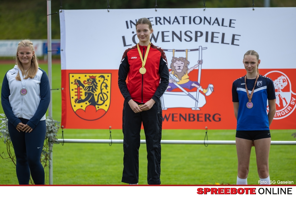 Starke Auftritte der Gaselan-Athletinnen bei den Löwenspielen in Löwenberg. Bei den 31. Löwenspielen in Löwenberg am 6. und 7. September gingen über 500 Athletinnen und Athleten aus 62 Vereinen an den Start. Auch die SG Gaselan Fürstenwalde war mit einem kleinen, aber schlagkräftigen Team vertreten. Anny Sosnowsky (WU16) startete gleich in mehreren Disziplinen. Im Dreisprung, ihrer Paradedisziplin, wollte sie den Meeting-Rekord von 11,58 m angreifen. Doch Dauerregen und Gegenwind machten das Unterfangen unmöglich, 11,13 m bedeuteten diesmal nicht den erhofften Rekordsprung. Dennoch sprang sie ganz oben auf Podest und sicherte sich die Goldmedaille. Nele Kleinschmidt (WU16) überzeugte vor allem in den Wurfdisziplinen. Im Kugelstoßen holte sie mit 10,35 m die Goldmedaille und verpasste im Diskuswurf den Sieg nur hauchdünn mit 27,25 m landete sie auf Platz zwei, lediglich 15 cm hinter der Erstplatzierten. Auch Melissa Linde (WU20) zeigte im Diskuswurf eine solide Leistung. Mit 31,91 m blieb sie zwar unter ihrer Saisonbestweite (34,50 m), bewies aber erneut Konstanz im Ring.Trotz der schwierigen Wetterbedingungen zeigten die Gaselan-Athletinnen starke Leistungen und sammelten wichtige Podestplätze. Besonders für Anny Sosnowsky bleibt das Ziel bestehen: Den Löwenberger Meeting-Rekord anzugreifen vielleicht schon im kommenden Jahr. Den hält bis heute die ehemalige Gaselerin Celina Baumgart, die im Jahr 2014 11,70 m weit sprang.