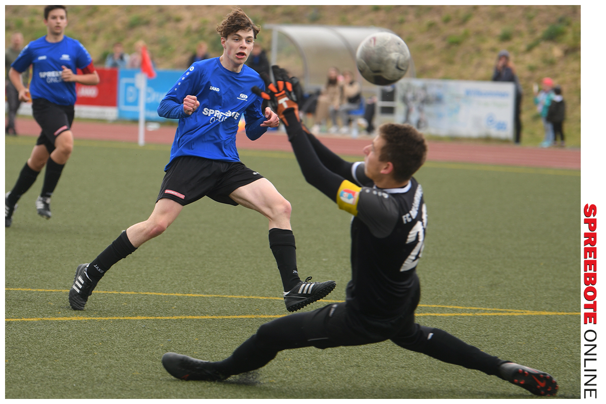 Stürmischer Sonntag im Pneumant Forum: Die Begegnung am 22. Spieltag der Landesliga der U19 hieß BSG Pneumant gegen den FC Bad Liebenwerda. Die Jungs der BSG wollten das Remis der vergangenen Woche in Peitz wieder auswetzen. Allerdings setzte das Trainerteam Dominik Hoffmann & Nils Niemeier auf Spieler, die in der Vergangenheit nicht so oft die Gelegenheit hatten zu spielen. Die BSG kam stark ins Spiel und ließ den FC Bad Liebenwerda, der in Unterzahl antrat, ordentlich laufen. Allerdings nahm die BSG das ganze etwa zu locker und machte den Gegner immer wieder und Stück für Stück stärker, so dass der Gast sogar in Unterzahl in der 17. Min. mit 0:1 in Führung gehen konnte. Das Trainerteam der BSG reagierte nun schnell und wechselte Luca Ganswindt und Kelvin Jentsch ein, beide sorgten gleich für ordentlich Dampf. Die Auswechselung hatte zur Folge, dass das Team nun geschlossener auftrat, die Bälle auch da ankamen, wo sie sollten. Das war wie eine Idealzündung für das Team. Kelvin Jentsch bereitete für Willi Sette eine super Steilvorlage vor und dieser brachte in der 33. Min. den Ausgleich für die BSG Pneumant zum 1:1. Auch wenn der FS Bad Liebenwerda in Unterzahl spielte, waren sie doch bestrebt, soweit wie es ging, dem Gegner zu trotzen. Bis zur Halbzeit blieb es wie es ist, in der Kabine von Pneumant gaben die beiden Trainer unmissverständlich den Jungs folgendes auf den Weg: „Wir denken, dass Ihr selber merkt, was da draußen auf dem Platz passiert, also strafft Euch und lasst den Ball und Gegner laufen sowie keine Zeit zum Atmen!“ Dies schien bei den Jungs angekommen zu sein. Der FC Bad Liebenwerda wurde nun mehr unter Druck gesetzt und über die Flanken bearbeitet, so dass sich weitere Chancen boten. Bis zur 69. dauerte es allerdings dann doch noch. Der Keeper von Liebenwerda hielt sein Team im Spiel, doch in der 69. Min. konnte er den Schuss von Kelvin Jentsch nicht halten und so stand es 2:1 für den Gastgeber. Es schien, dass sich die Liebenwerda-Mannschaft aufgegeben hätte, was den Spielern von Pneumant in die Karten spielte. In der 75. Min. konnte sich dann abermals Willi Sette durchsetzen und schoss Pneumant zum 3:1-Sieg.