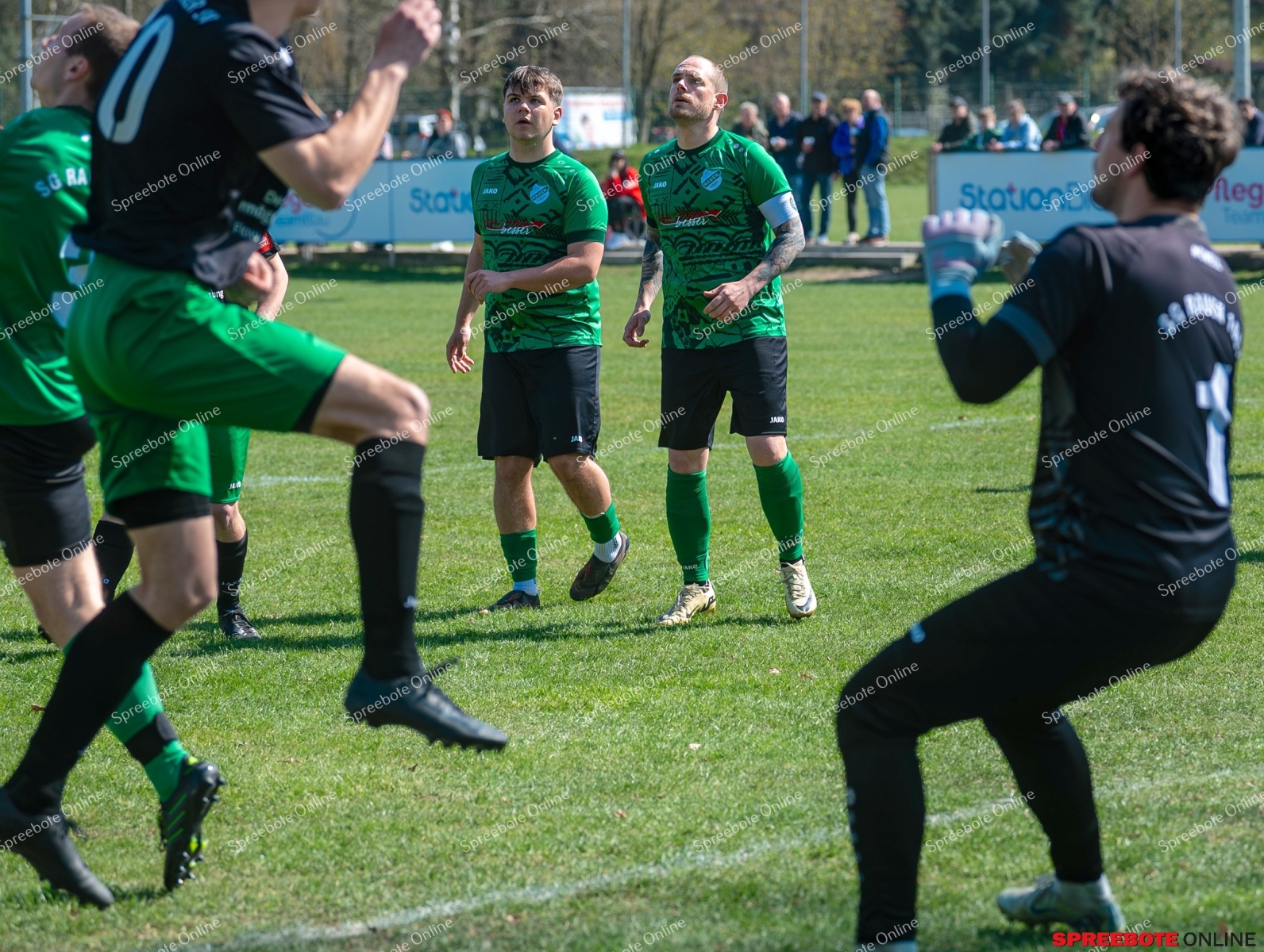 Ein schöner Sonnensamstag, nahezu windstill, genau richtig zum Fußballspielen. Für die Fans, die es genießen, bei frisch gezapftem Bier sich auszutauschen, war die Begegnung zwischen der SG Rauen und dem Reichenberger SV eine willkommene Gelegenheit. Das Spiel ist durch Rauens Trainer Niespodziany perfektioniert worden. Taktik ist eben alles, Rauen stand tief, und für den Herausforderer ist es halt immer schwer. Die Reichenberger versuchten viel, sich diesem massiven Bollwerk zu erwehren. Immer wenn sich dann doch eine Lücke auftat, wurde das Spiel schnell und hektisch. Und darauf, so schien es, haben die Rauener gewartet, jetzt ging es konzentriert schnell nach vorn, besonders auf der Flügelseite mit Felix Kraus, der super flankte oder auch die Eckbälle schoss, doch es fiel bei aller Kraftanstrengung kein Tor, die Reichenberger waren halt zur Stelle. In der 11. Minute gibt es ein kleines Zwischenspiel im Mittelfeld, Reichenberg bekommt einen Freistoß, Thomas Grönke hält einfach mal aufs Tor, nahezu präzise wie eine Bogenlampe schlägt der Ball aufs linke Eck, zwar ran, aber nicht rein. 17. Minute Abschlag vom Rauener Torwart Pospieszynski und diesmal nicht in den Pulk, der sich rechts schon positionierte, endlich mal was Neues, sondern flankte einfach auf die andere Seite, jetzt gab es einen Ruck auf das Gästetor und Lucas Schmidt von den Gästen schaltet geistesgegenwärtig um, holte sich den Ball, aber kann auch nicht vollenden, weil Götze und Hähnlein sich den Ball vor dem Mittelfeld wieder holen und nur fast ein Tor geschossen hätten. 32. Minute, die Gäste versuchen verstärkt, mit hohen Bällen sich zu empfehlen, und die finden auch gezielt den Mitstreiter, aber die Verteidigung fasst sofort zu und die Chance ist dahin. 35. Minute wieder hoher Ball, diesmal auf die rechte Hälfte des Tores, Wagner und Pospieszynski gehen hoch, Ecke für Reichenberg, kein Tor, aber nächste Ecke. Ball kommt, Pospieszynski faustet diesen weg, aber der Ball kommt zurück, im Getümmel, es steht 0:1 für die Gäste durch Tom Wintzler. Das Spiel bleibt unspektakulär bis zur 58. Minute, Götze macht den Ausgleich.