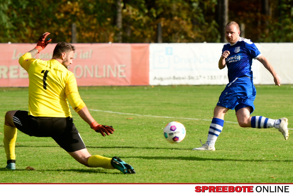 Bestes Fußballwetter: kein Regen, mal Sonne, mal Wolken, ideale Voraussetzungen zum Fußballspielen also. Im Siegmund Balzer Stadion in Briesen trafen am Samstag der FV Blau Weiss Briesen II und die SpG Lindow/Finkenheerd II in der Kreisklasse Süd aufeinander. Laut Tabelle konnte man davon ausgehen, dass dies eine durchaus gleichwertige Auseinandersetzung werden würde. So richtig kam das Spiel aber nicht in Fahrt, zumindest aus Sicht der Gäste. Briesen übernahm augenblicklich das Spielgeschehen und kam in den ersten Minuten zumeist über den rechten Flügel mit Kevin Schübler heraus. Dieser trat den Ball für die SpG gefährlich in den Strafraum, legte ihn auf George Krüger ab, der wiederum nach allen Regeln der Kunst versuchte, den Ball abzuschießen. Das war vorerst noch ein frommer Wunsch. Lindow/Finkenheerd versuchte indes zu unterbinden, was ihnen nur schwer gelang. Sie versuchten die Briesener aus der Reserve zu locken, dies allerdings ohne jeden Erfolg. Das törnte die Briesener eher an als ab. Dennis Lucke, der endlich mal wieder mit am Spiel teilnahm, hatte wie Krüger noch kein richtiges Mittel finden können, aber sorgte immerhin schon mal für gefährliche Tor-Momente. Erst ab der 16. Minute begann mit Hannes Augustin, der im Übrigen auch ein tolles Spiel machte, der Torreigen. Die Begegnung hatte eher den Anschein eines F-Junioren Spiels, denn ab der 30. Minute fielen durch George Krüger, Kevin Schübler, Dennis Lucke und Sirko Gallisch weitere 9 Tore für die Briesener. Die SpG Lindow/Finkenheerd war der Resignation nahe, nur der Torwart hatte mit einigen Glanzparaden Schlimmeres verhindern können. Die Trainerbank der SpG hatte mit dem Spieltag schon abgeschlossen und bereitete sich auf die kommenden Spiele vor, da waren wohl die Chefstrategen nicht dabei. Für Briesen, mit den noch ausstehenden drei Punkten des Nichtantritts des SV Blau-Weiss Markendorf III, ist die Tabellenführung in der Kreisklasse Süd eigentlich klar.