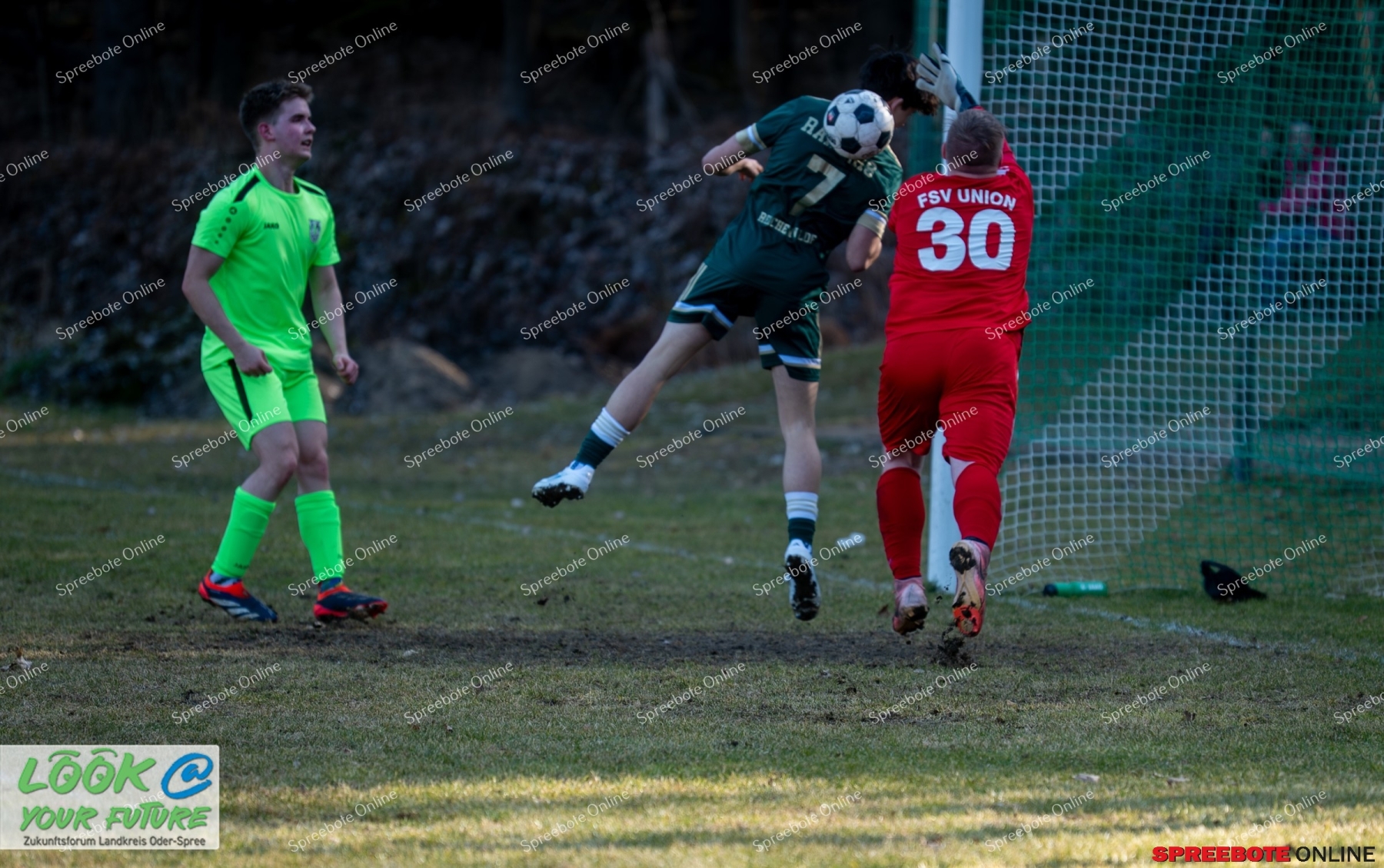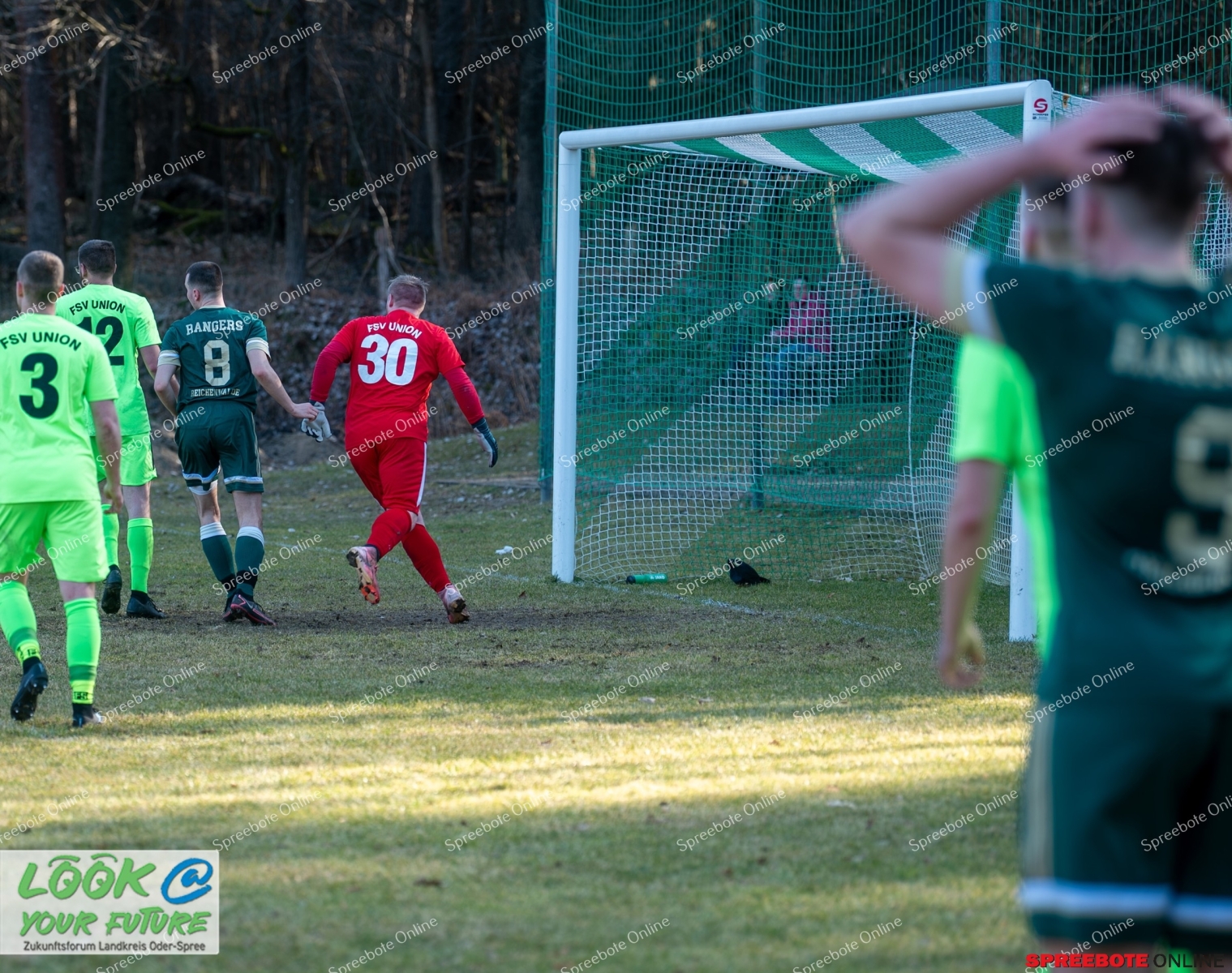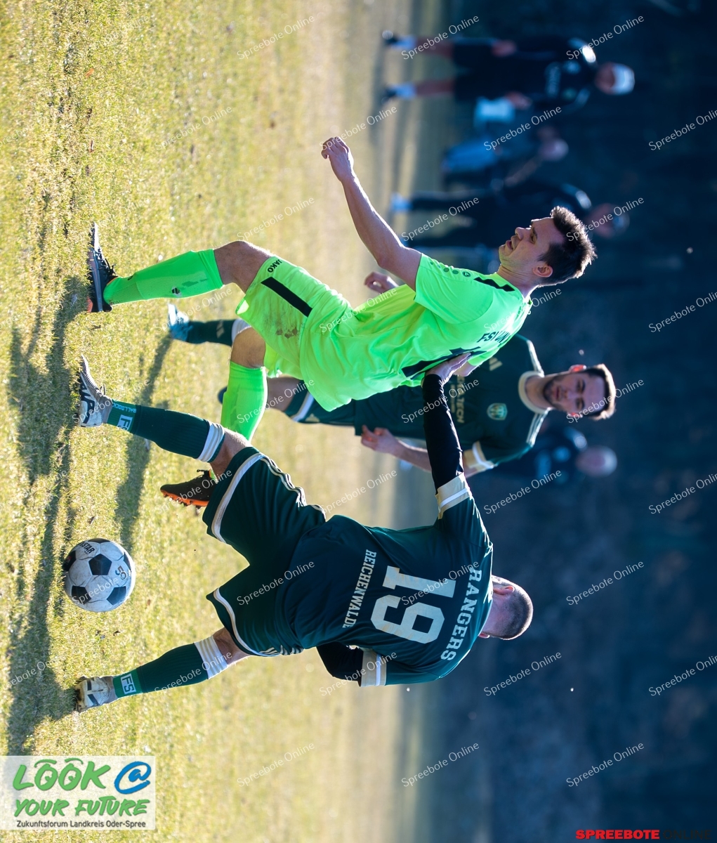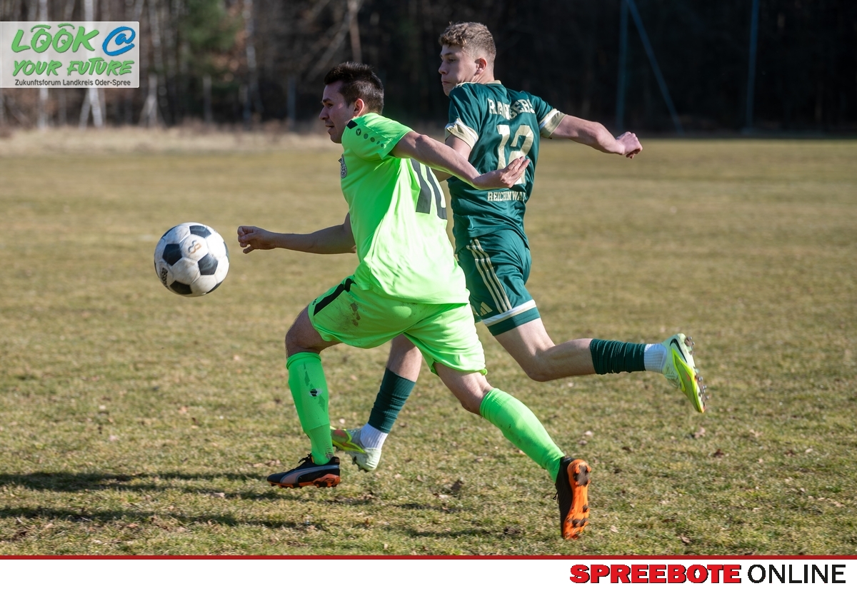 Das Nachholspiel zwischen dem Reichenwalder FC und dem FSV Union III. Männer fand am Samstag im Waldstadion in Reichenwalde statt. Der Rasenplatz, der sich noch im Aufbau befindet, hatte so seine Tücken für Spieler und Ball gleichermaßen eine Herausforderung. Es ist, wie es ist, das macht das Spiel umso spannender, sagte einer der Gäste am Rand mit einem Schmunzeln. Für Union geht es um viel, die Vorbereitungen waren alle auf einem guten Level, so Trainer Pötsch zufrieden. Man habe sich für die Rückrunde viel vorgenommen, das Team ist willens, sich weiter zu steigern. Auch die Reichenwalder unter Trainer Lehmann sind gefestigt, zwei Siege in Folge sagen schon eine Menge aus. Die Partie nahm an Fahrt auf, es zeichnete sich ein Spiel auf Augenhöhe ab. Starke Paraden im Mittelfeld und das gute Auftreten machten es beiden Mannschaften nicht einfach, einen adäquaten Spielzug hinzubekommen. Kaum hatte Union den Ball und über die Flügel ihren Einsatz, stand Reichenwalde mit ihrer Abwehrkette bereit und blockte. Dann ging es umgekehrt, aber ein Durchkommen durchs Unioner Lager war ebenfalls nicht einfach. Kurz vor der Pause gelang es mit Anstrengung dann doch für Reichenwalde auf der Sonnenseite, das Führungstor zu schießen Patrick Wach traf, der Jubel war groß. Nach der Pause gleiche Szenen, das Spiel verflachte. Dann ein Aufreger in der 71. Minute. Auf der Sonnenseite hatte der Unioner Michel Weimann es geschafft, die Abwehr auszutricksen und stellte den Gleichstand her. Das Spielgeschehen wurde nun intensiver, denn Reichenwalde drängte weiter auf das Tor und presste Union in die eigene Hälfte. Union konnte sich aus der Umklammerung nur schwer lösen. Reichenwalde hämmerte laufend auf das Tor rechts vorbei, links vorbei, oben drüber. Dann noch der Unioner Keeper Feilke, der von rechts nach links hechtete, mit den Verteidigern im Schlepptau. Es fiel kein Tor mehr, trotz der Bemühungen auf beiden Seiten.