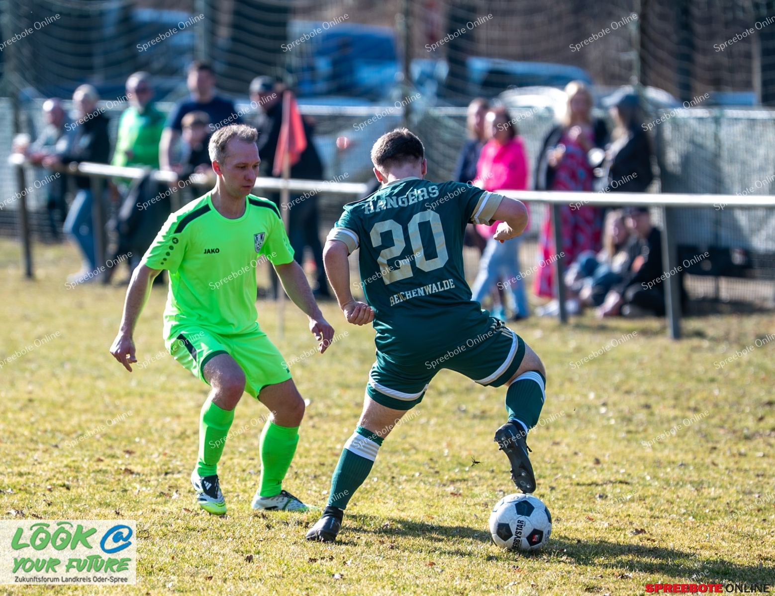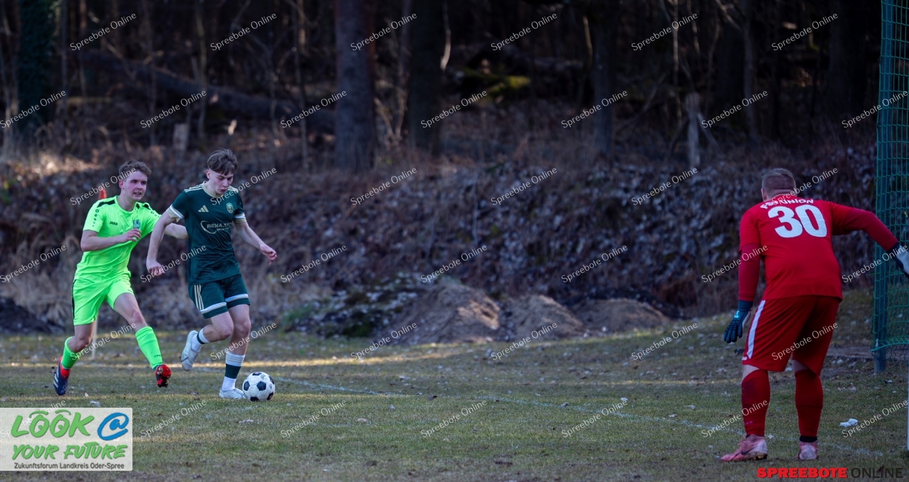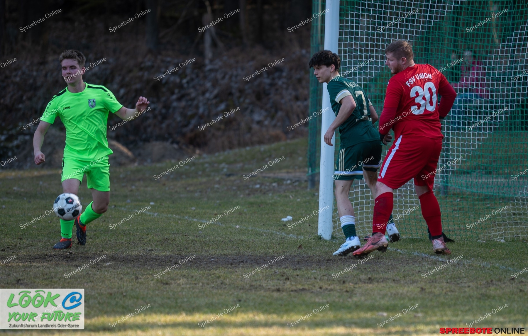 Das Nachholspiel zwischen dem Reichenwalder FC und dem FSV Union III. Männer fand am Samstag im Waldstadion in Reichenwalde statt. Der Rasenplatz, der sich noch im Aufbau befindet, hatte so seine Tücken für Spieler und Ball gleichermaßen eine Herausforderung. Es ist, wie es ist, das macht das Spiel umso spannender, sagte einer der Gäste am Rand mit einem Schmunzeln. Für Union geht es um viel, die Vorbereitungen waren alle auf einem guten Level, so Trainer Pötsch zufrieden. Man habe sich für die Rückrunde viel vorgenommen, das Team ist willens, sich weiter zu steigern. Auch die Reichenwalder unter Trainer Lehmann sind gefestigt, zwei Siege in Folge sagen schon eine Menge aus. Die Partie nahm an Fahrt auf, es zeichnete sich ein Spiel auf Augenhöhe ab. Starke Paraden im Mittelfeld und das gute Auftreten machten es beiden Mannschaften nicht einfach, einen adäquaten Spielzug hinzubekommen. Kaum hatte Union den Ball und über die Flügel ihren Einsatz, stand Reichenwalde mit ihrer Abwehrkette bereit und blockte. Dann ging es umgekehrt, aber ein Durchkommen durchs Unioner Lager war ebenfalls nicht einfach. Kurz vor der Pause gelang es mit Anstrengung dann doch für Reichenwalde auf der Sonnenseite, das Führungstor zu schießen Patrick Wach traf, der Jubel war groß. Nach der Pause gleiche Szenen, das Spiel verflachte. Dann ein Aufreger in der 71. Minute. Auf der Sonnenseite hatte der Unioner Michel Weimann es geschafft, die Abwehr auszutricksen und stellte den Gleichstand her. Das Spielgeschehen wurde nun intensiver, denn Reichenwalde drängte weiter auf das Tor und presste Union in die eigene Hälfte. Union konnte sich aus der Umklammerung nur schwer lösen. Reichenwalde hämmerte laufend auf das Tor rechts vorbei, links vorbei, oben drüber. Dann noch der Unioner Keeper Feilke, der von rechts nach links hechtete, mit den Verteidigern im Schlepptau. Es fiel kein Tor mehr, trotz der Bemühungen auf beiden Seiten.
