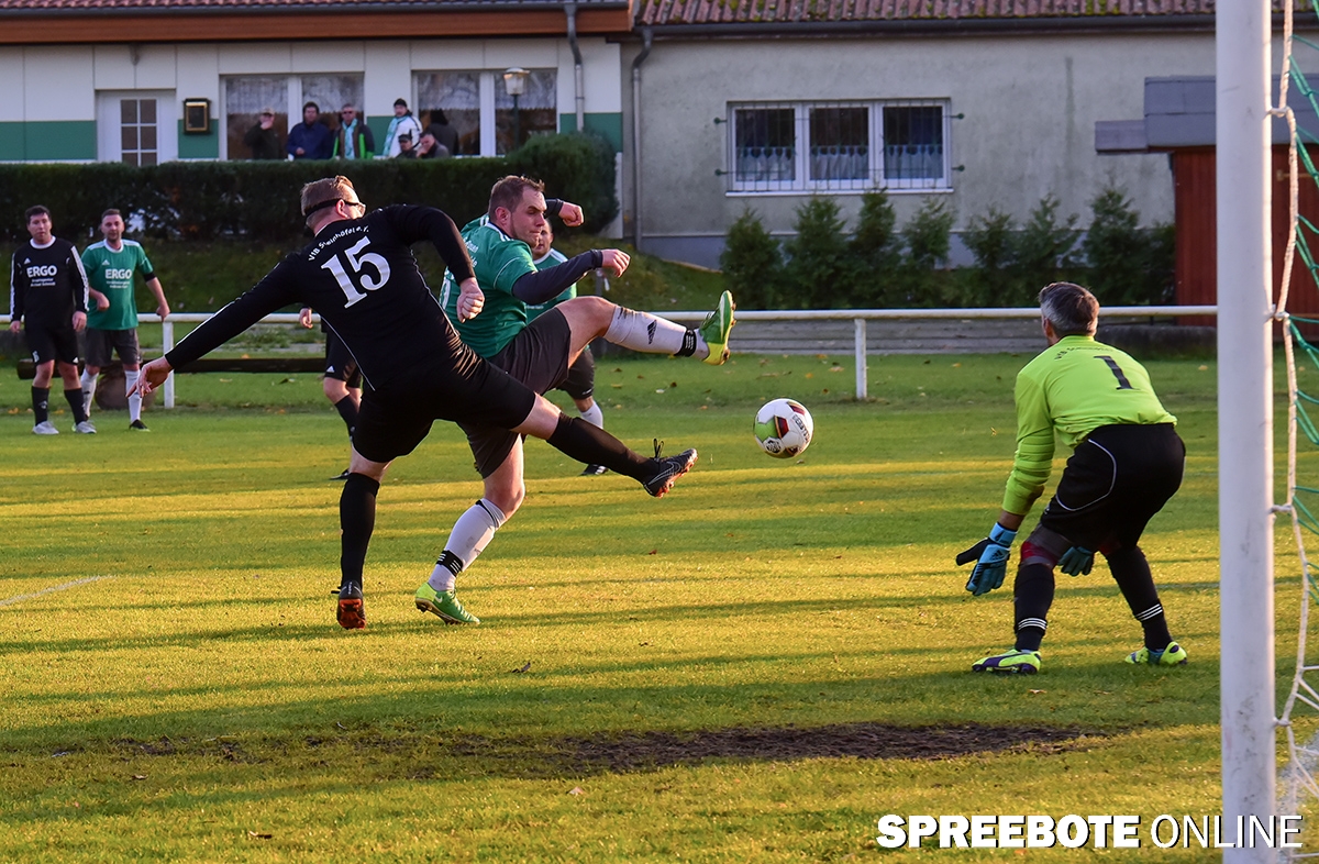 Die SpG Rauen/Reichenwalde hat sich mit einem knappen, aber verdienten Sieg von den heimischen Fans in Rauen mit einem wahren Torregen verabschiedet. Wie schon in den letzten Spielen musste die Hintermannschaft der SpG erneut umgestellt werden. Trotzdem wollte man von Beginn an zeigen, wer Herr im Rauener Stadion war. Doch das Gegenteil war der Fall. Schon mit dem ersten Angriff konnten die Gäste aus Steinhöfel die SpG überraschen und gingen schon nach 2 Minuten in Führung. Geschockt vom frühen Gegentor, lief bei der Heimmannschaft nichts zusammen.