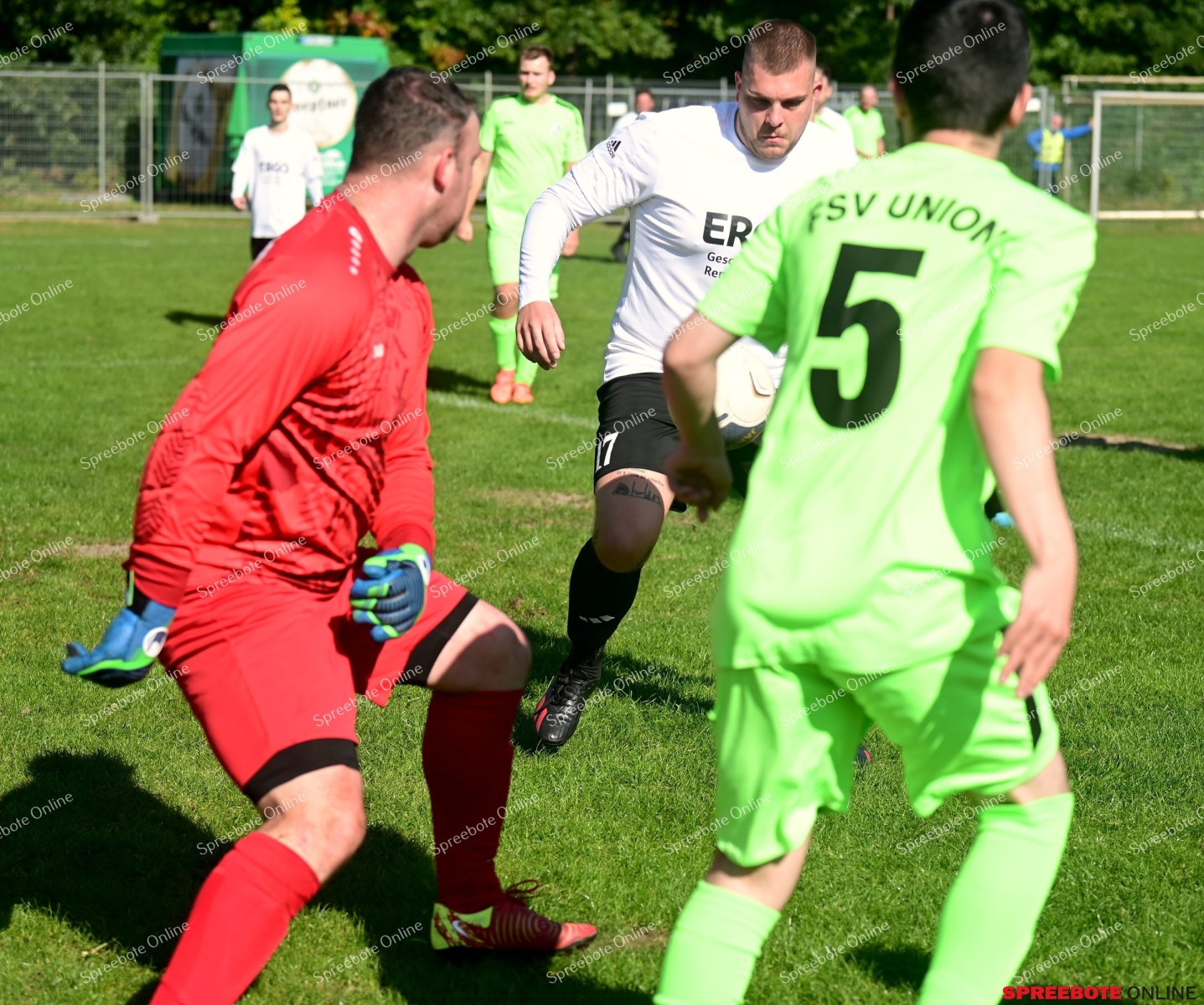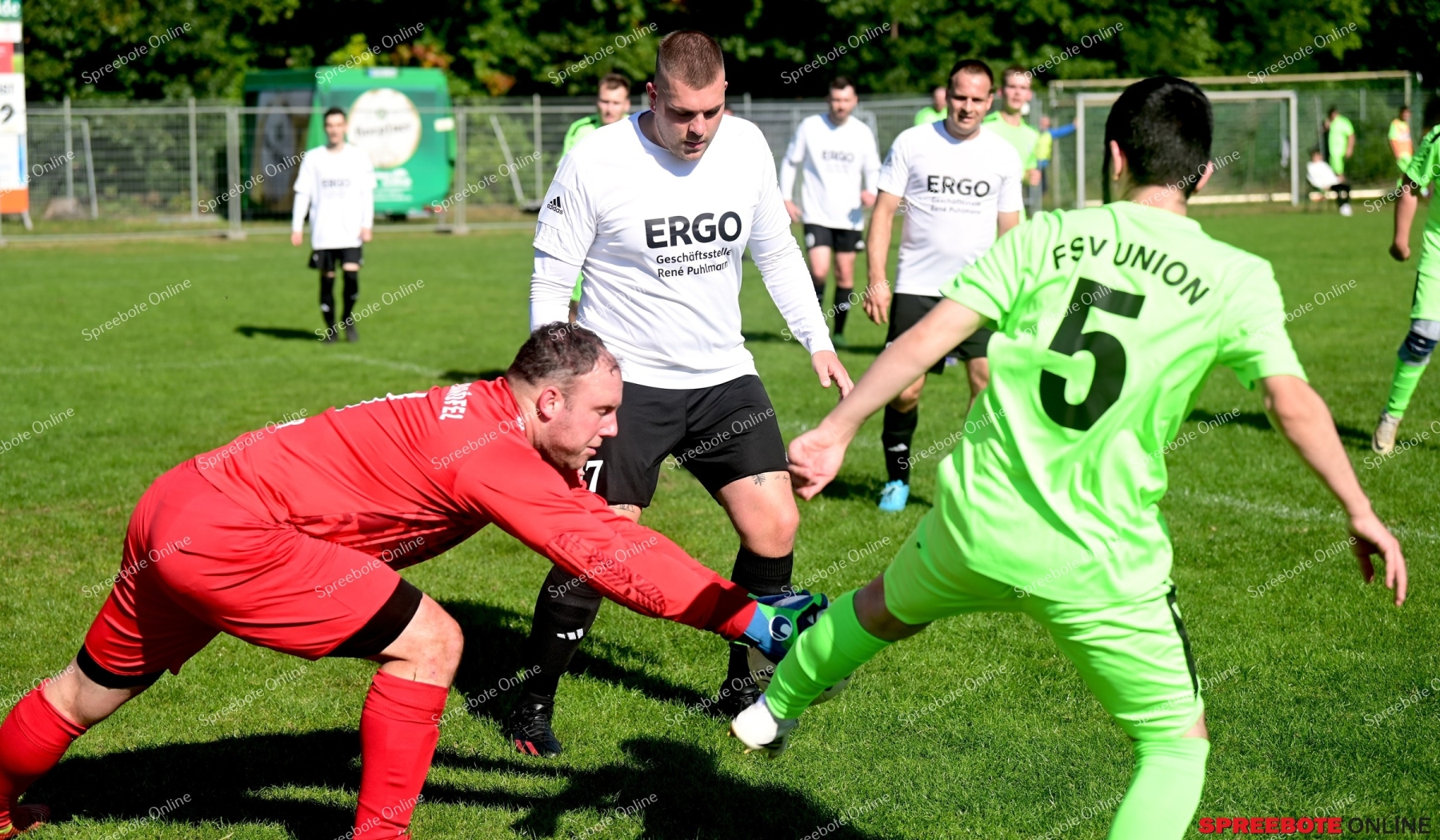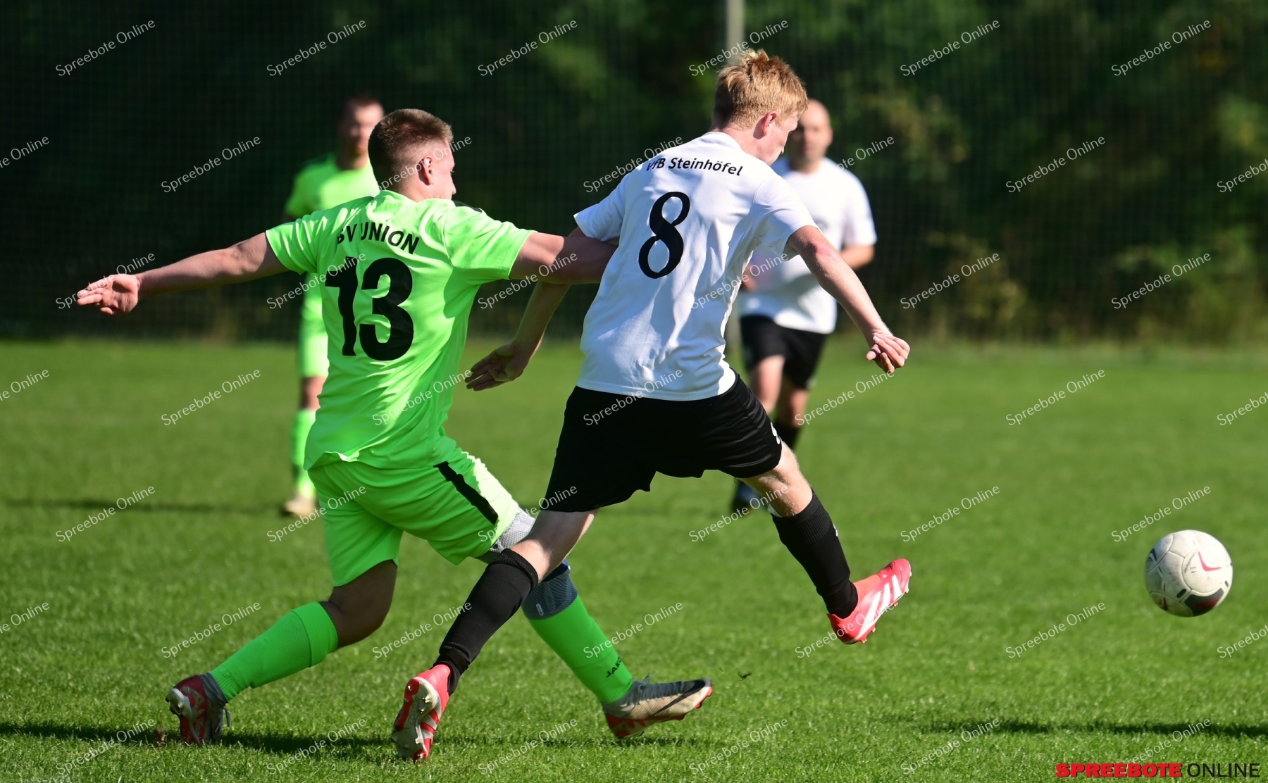 Bei der Vielzahl von renommierten Vereinen in der Kreisklasse Mitte wird die Saison an spannungsreichen Spielen ihren Reiz sicherlich nicht verlieren. Zum Samstagsspiel kamen ins Friesenstadion des FSV Union Fürstenwalde III. die Gäste des VfB Steinhöfel II. Wer die Favoritenrolle wirklich innehatte, zeigte sich dann aber erst später. Union in drei Spielen mit allem, was man erreichen kann und Steinhöfel, die bisher erst zwei Spiele hatten, gewannen und verloren. Also eine durchaus sehenswerte Partie. Steinhöfel hat wie viele andere Teams auch das gleiche Problem. Man muss oftmals auf wichtige Spieler verzichten. Jedoch setzten sie sich gut und gekonnt durch, aber der Abschluss kam nicht zustande. Union hingegen in seiner Konterrolle spielte sich mit leidenschaftlichem Engagement in die vordere Reihe und setzte Steinhöfel unter Druck. Diese konnten die Bemühungen zunächst noch gut kontrollieren. Mit einem schnellen Konter über die Flügel setzte Union allerdings schon frühzeitig den ersten Marker in der 16. Minute durch Tom Selchow. Union Trainer Stephan Pötsch zeigte sich bestätigt, aber wartete ab. Hingegen Lucas Höring hatte es kommen sehen und an der Seitenlinie frühzeitig auf Unstimmigkeiten seines Teams hingewiesen. Für das Steinhöfler Team war die frühe Führung durch Union nicht das eigentliche Problem, sondern die Kraftanstrengungen, die unternommen werden mussten, um Union auf Distanz zu halten. Im Gegenzug nur sieben Minuten später durchbrach Steinhöfel die Abwehr und machte mit Justin Höring den Ausgleich. Was allerdings der anschließende Siegestanz für eine Bedeutung hatte, erschloss sich nicht sorgte aber für enorme Begeisterung. Pötsch hatte dann wohl den richtigen Riecher und wechselte nicht, denn Union befand sich im Rausch. Das machte sich auch gleich zu Beginn der zweiten Halbzeit bemerkbar: 46., 50. und 53. Minute erneut Selchow und plötzlich stand es 4:1.