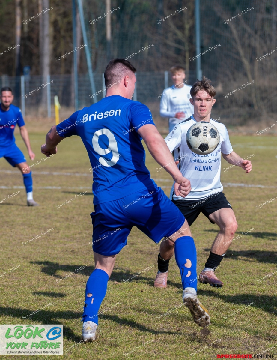 Im Vergleich zum Hinspiel präsentierte sich das Team aus Briesen nun deutlich bissiger und entschlossener, besonders auch in den Zweikämpfen. Union agierte häufig mit langen Bällen, die jedoch konsequent und souverän verteidigt wurden. Die Defensive stand sicher und ließ damit nur wenig zu. Die Führung fiel nach einer guten Kombination. Jonas Noske setzte sich energisch im Unioner Strafraum durch, behielt die Übersicht und legte im richtigen Moment an die Strafraumgrenze zurück. Von dort aus läutete Thomas Zupp mit einem straffen Schuss in der 14. Minute die 0:1-Führung ein. Die Führung war im Hinspiel auch in der ersten Halbzeit gefallen, hatte also so zudem Zeitpunkt noch nichts zu sagen. Nach einem individuellen Fehler begünstigten sie die Unioner, und Luis Goldschmitt erzielte in der 17. Minute den Ausgleich. Die Intensität nahm nun auf beiden Seiten zu, wobei Briesen sich vermehrt durchsetzte und gefährlich vor das Gästetor mit mehreren Möglichkeiten zur Führung kam, jedoch nicht vollendete. Und die Unioner Abwehr fischte zudem gut die Bälle ab, was ohnehin ärgerlich für Briesen war. Union setzte auf Schnelligkeit und hatte ebenfalls nicht das Glück auf seiner Seite. Das Spiel plätscherte so dahin. Erst in der zweiten Halbzeit wurde es hektisch. Unions Trainer Tübbecke hatte in der Pause das Team noch einmal wachgerüttelt, um den Briesenern weiter die Stirn zu bieten. Nach dem Seitenwechsel waren die Briesener klar tonangebend, die Ansprache schien verpufft. Mit der besseren Spielanlage und viel Druck nach vorne drängte Briesen auf die erneute Führung. Diese fiel schließlich nach einer Ecke in der 71. Minute. Ecke von rechts, etwas zu lang, Noske geht hoch, lenkt den Ball in den Pulk der Strategen, Wagenitz bekommt ihn zwar leicht streifend ab, der Ball fällt dem Abwehrchef Philipp Ockert genau vor die Füße, der drückt ab, 1:2 für Briesen. Fürstenwalde war zwar willens, konnte aber an den Erfolg des Hinspiels nicht weiter anknüpfen. Briesen hielt dagegen und bekam gute Gelegenheiten, doch die Gastgeber hielten sich bis zum Schluss im Spiel. Revanche geglückt.