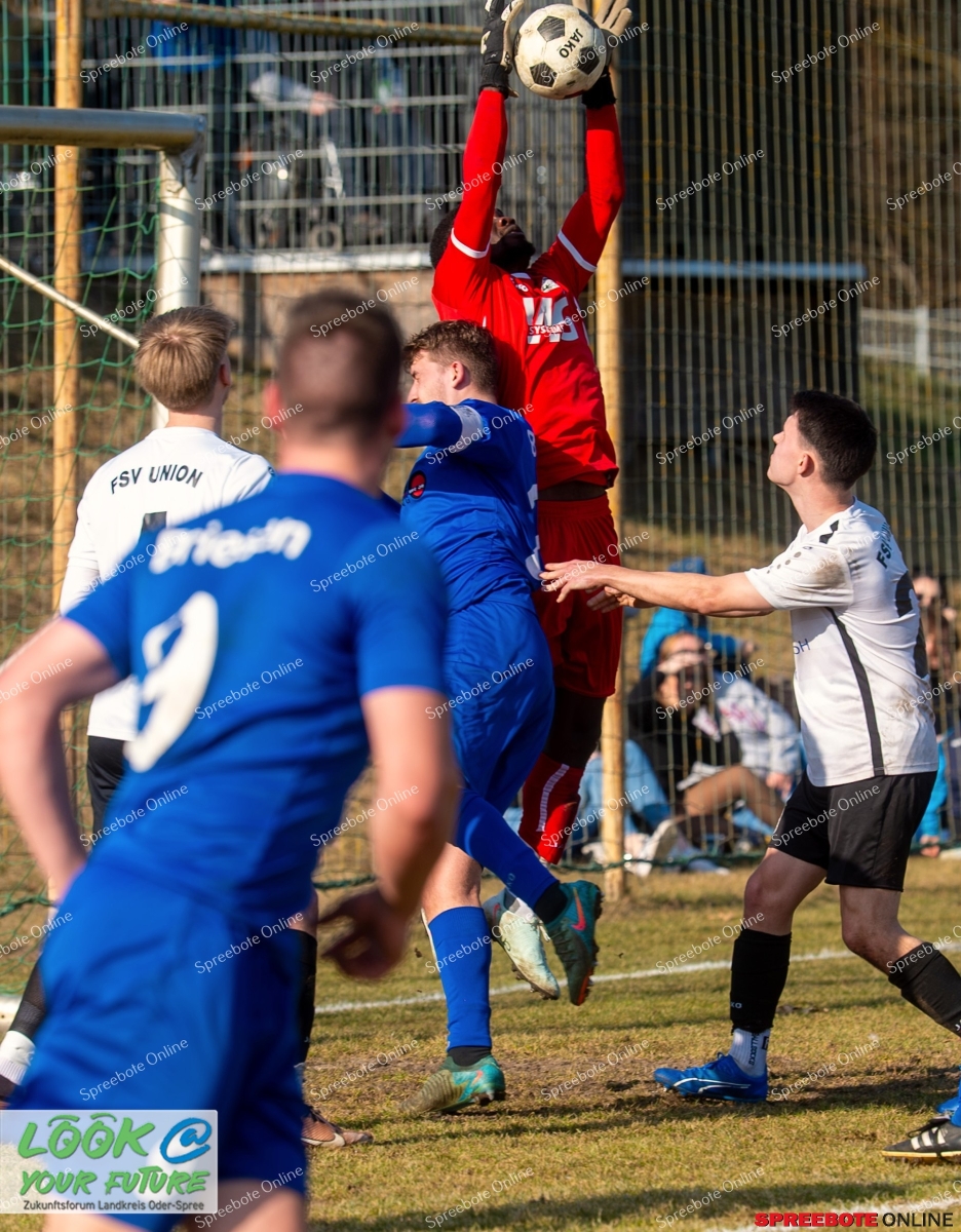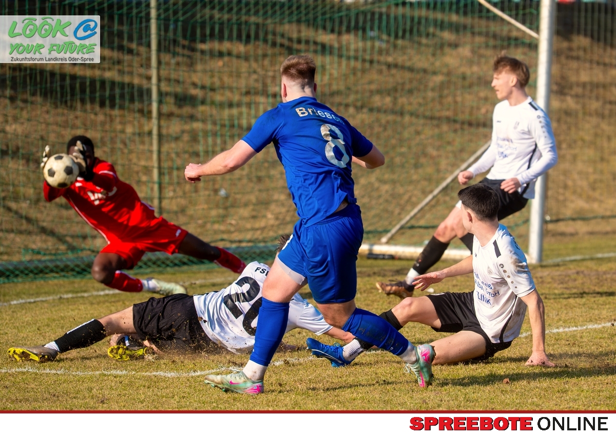 Nach der Klatsche am ersten Spieltag bei der Begegnung des FV Blau-Weiß Briesen im heimischen Sigmund-Balzer-Waldstadion hatte der FSV Union Fürstenwalde mächtig für Trubel gesorgt. Mit 1:5 deklassierten sie die Gastgeber, eine Schmach, die so nicht wieder vorkommen sollte. Und zum Rückrundenauftakt nun vielleicht die Revanche. Die Partie am Samstag im Friesenstadion zog zahlreiche Fans an, die von der Balustrade geradewegs einen guten Blickwinkel auf das Geschehen hatten. Bei gefühlten 20 Grad kamen die Spieler auf beiden Seiten ganz schön ins Schwitzen. Nach einer wetterbedingt nur mäßigen Vorbereitungszeit zeigten die Teams jedoch eine starke Leistung und lieferten sich ein heftiges Gefecht.