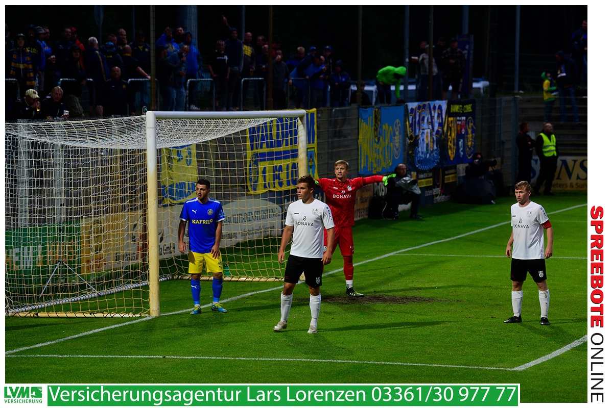 | Am Dienstagabend verfolgten über 700 Zuschauer (darunter etwa 100 Lok-Fans) beim Flutlichtspiel in der Bonava-Arena die Regionalligapartie zwischen dem FSV Union Fürstenwalde und dem 1. FC Lok Leipzig. In der Vorspieltagtabelle liegen beide Teams mit jeweils 4 Punkten auf der Habenseite fast gleichauf, auf dem Spielfeld sah man dann aber doch den Unterschied. Die junge Union-Mannschaft, welche am Wochenende ein sehr beachtliches 3:3-Unentschieden erreichte, versuchte mit frühem Pressing den Spielaufbau der Leipziger zu stören und selbst eigene Angriffsakzente zu setzen. Die Leipziger, am Wochenende spielfrei gewesen, wegen einem Corona-Vorfall bei Tebe und somit ausgeruhter, kamen aus der abwartenden Haltung dann aber zum Zuge. Die Unioner agierten oft zu hektisch und fehlerhaft. Die Leipziger wirkten da schon cleverer und abgezockter. So dann auch in der 17. Minute, als die Unioner den Ball durch den Strafraum laufen lassen und Loks Nattermann das Leder unbedrängt ins Tor zum 1:0 für Leipzig einschieben konnte. Die Unioner Chancen in der 22. (Eshele) und 27. Minute (Stagge) führten nicht zum Torerfolg. Seinen zweiten Treffer markierte dann aber in der 39. Minute Nattermann und es stand 2:0 für Lok Leipzig. Erneut einen Fehler in der Union-Abwehr nutzte Nattermann nur eine Minute später und erzielte mit seinem 3:0 einen echten Hattrick.