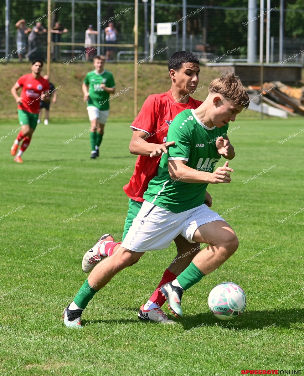 Da nach den Mäharbeiten die Spielfeldlinien noch schwach zu erkennen waren konnte der Schiri Felix Schmidt vom FSV 63 Luckenwalde dann gegen 14.30 Uhr das Testspiel des FSV Union gegen den TSV Rudow endlich anpfeifen. Die Partie wurde von beiden Mannschaften offensiv geführt und beide Trainer gaben zu Beginn vornehmlich ihren Neuverpflichtungen anfänglich Einsatzzeiten. Trotz der Hitze, auch für die knapp 100 Zuschauer, entwickelte sich eine Torreiche erste Halbzeit. In der 12. Minute eröffnete Niklas Kosch den Torreigen mit der 1:0 Führung für den FSV Union. Die Berliner nutzten in der Folgezeit die noch nicht voll wirkende Defensivarbeit der Unioner aus und gingen nach Toren in der 17., 19. und 27. Minute mit 3:1 in Führung.