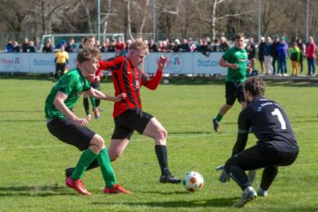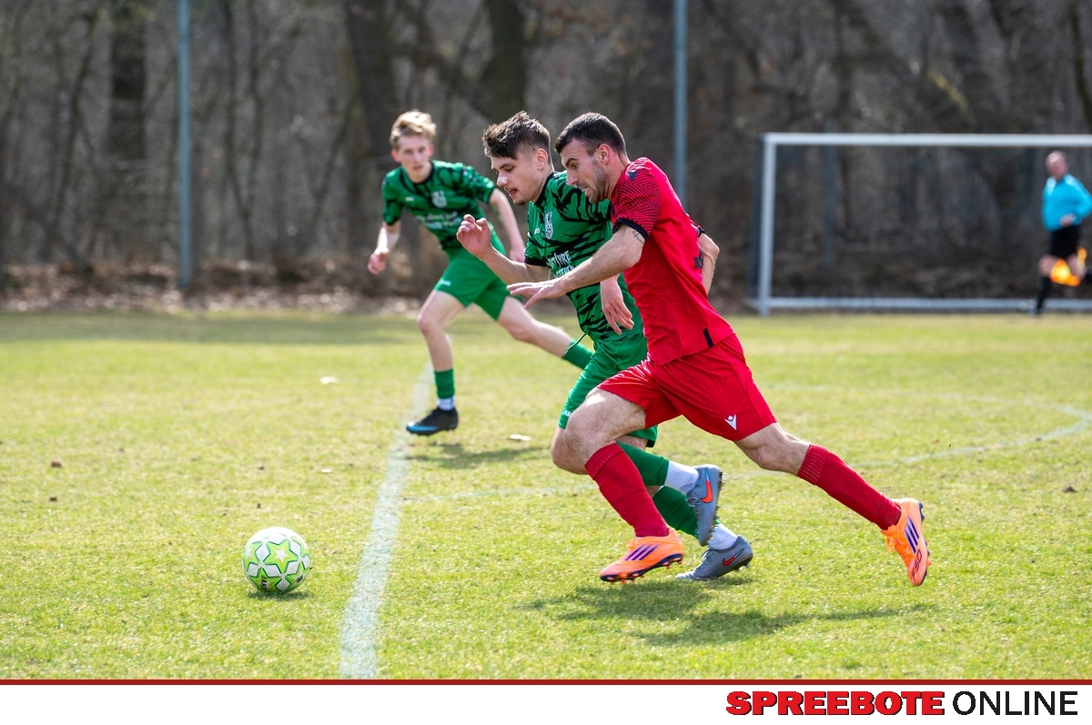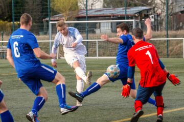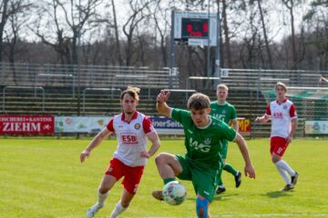 Von Anfang bis nahezu zum Ende der Partie zwischen dem FSV Union Fürstenwalde II und MTV Wünsdorf 1910 gaben die Gäste mit vielen erfolgversprechenden Spielzügen die Marschrichtung vor. In der ersten Halbzeit tasteten sich beide Teams ab und übten Druck aufeinander aus, mit schnellen und koordinierten Angriffen. Wünsdorf spielte sich seine Chance gut heraus und umkurvte die Abwehr – es stand 0:1 für die Gäste. Seitenlinie und Torwart machten weiter Mut, denn noch war Zeit, diesen Makel auszuwetzen. Nur wenig später, nach einer Ecke in der 20. Minute auf Wünsdorfer Seite, schlug Union zurück. Der Ball flog nahezu unberührt über die Köpfe, Tom Haak stand frei auf der linken Seite, nahm den Ball im Flug kraftvoll an, und er schlug wie im 90-Grad-Winkel unhaltbar ein. Kurze Freude, dann ging es weiter. Daraus entwickelte sich zunehmend eine schnelle Partie. Beide Teams drängten auf das zweite Tor. Folgenschwer für Union kamen die Wünsdorfer zweifelhaft zu ihrem zweiten Treffer. Abwehrspieler Lorenzo Gruno hielt Schritt, wollte den heranstürmenden Kapitän Spartak Doda ins Leere laufen lassen eine hauchdünne Berührung, Doda fiel im Strafraum, und Schiedsrichter Reik Wolke ahndete sofort das Vergehen: Elfmeter, 1:2 für Wünsdorf. Danach gab es kein Halten mehr. Union setzte nun vermehrt auf schnelle Angriffstaktiken, hielt Wünsdorf vom Leibe und sorgte mit erstaunlicher Präzision für Möglichkeiten. Es gab einen Freistoß aus halblinker Position, der leicht, aber kräftig geschossen nur Millimeter über die Latte flog, wobei sich Serge Metchop ganz schön strecken musste. Wenig später wurde Union in der Wünsdorfer Hälfte gestoppt, und der Schiedsrichter zeigte auf den Punkt die Revanche, der Ausgleich lag förmlich in der Luft. Straff geschossen, doch mit Flummi-Effekt sprang der Ball nicht ins Tor.