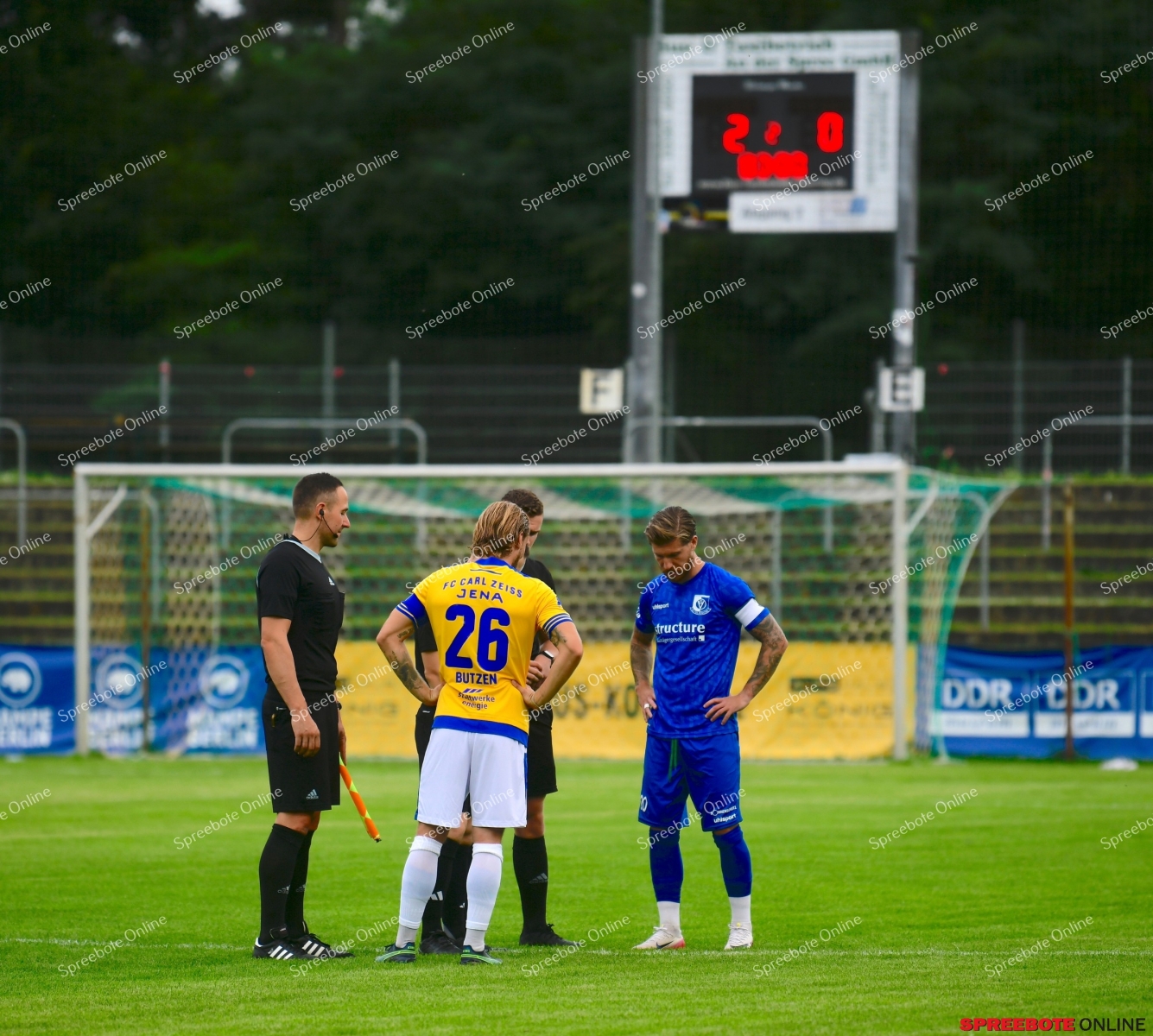 Mit der Mannschaft des FC Carl-Zeiss Jena war diesmal aber ein stärkerer Gegner mit auf dem Platz und hatte obendrein noch mit dabei einige Hundert Fans im Gästeblock als Unterstützung mit dabei. Mit 1164 zahlenden Zuschauern, also etwa 1300 Beobachtern, war am vergangenen Freitagabend beim Flutlichtspiel mit der ordendlichen Kulisse auch der Rahmen gegeben für eine hochklassige Partie, welche vom Schiri Lukawski aus Oranienburg geleitet wurde.