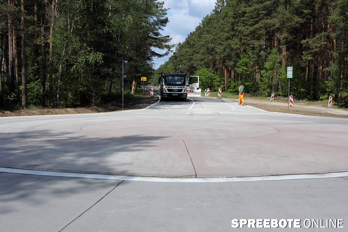 Der erste erneuerte Bauabschnitt der Kreisstraße, die Strecke von der Autobahnbrücke (A10) bis Freienbrink in der Gemeinde Grünheide (Mark) wurde heute abgenommen und für den Verkehr freigegeben. Im zweiten Abschnitt zwischen Freienbrink und Spreeau laufen die Bauarbeiten noch. Insgesamt werden 3,75 Kilometer der Kreisstraße ausgebaut.