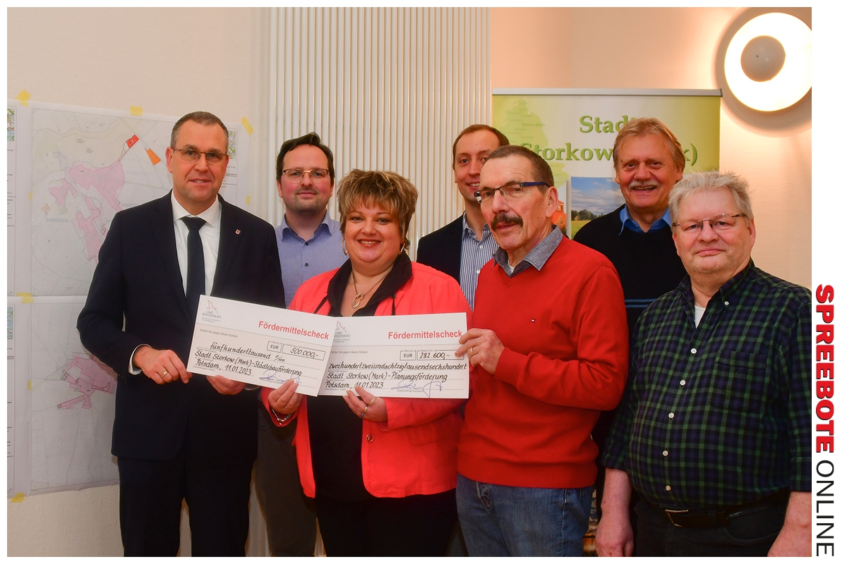 Mitte der Woche bekam die Stadt Storkow einen umfangreichen Fördermittelbescheid. Rainer Genilke, Staatssekretär im Ministerium für Infrastruktur und Landesplanung des Landes Brandenburg, traf sich mit Bürgermeisterin Cornelia Schulze-Ludwig und den Ortvorstehern zur Übergabe im Rathaussaal. Mit Hilfe dieser Förderung wird in den kommenden Jahren ein gesamtstädtischer Flächennutzungsplan für die Kernstadt und die 14 Storkower Ortsteile erstellt werden, denn bislang gibt es mit Ausnahme von Limsdorf für die Storkower Ortsteile keinen Flächennutzungsplan. Dabei hat ein Flächennutzungsplan viele nützliche Vorteile. Er regelt beispielsweise, an welcher Stelle überhaupt gebaut werden darf. Die Stadt verfolgt in erster Linie das Ziel, Planungssicherheit zu schaffen, um Baulücken zu schließen.