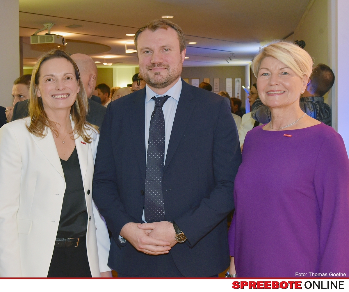 Daniel Keller, Minister für Wirtschaft, Arbeit, Energie und Klimaschutz des Landes Brandenburg, wurde von Corina Reifenstein, Präsidentin der HWK Cottbus (r.) und HWK-Hauptgeschäftsführerin Manja Bonin zum Neujahrsempfang begrüßt. Im Mittelpunkt der Gespräche der rund 300 Gäste standen die Erwartungen an die Bundes- und Landespolitik mit den Themen Entlastungen bei Steuern und Abgaben sowie der Bürokratieabbau.