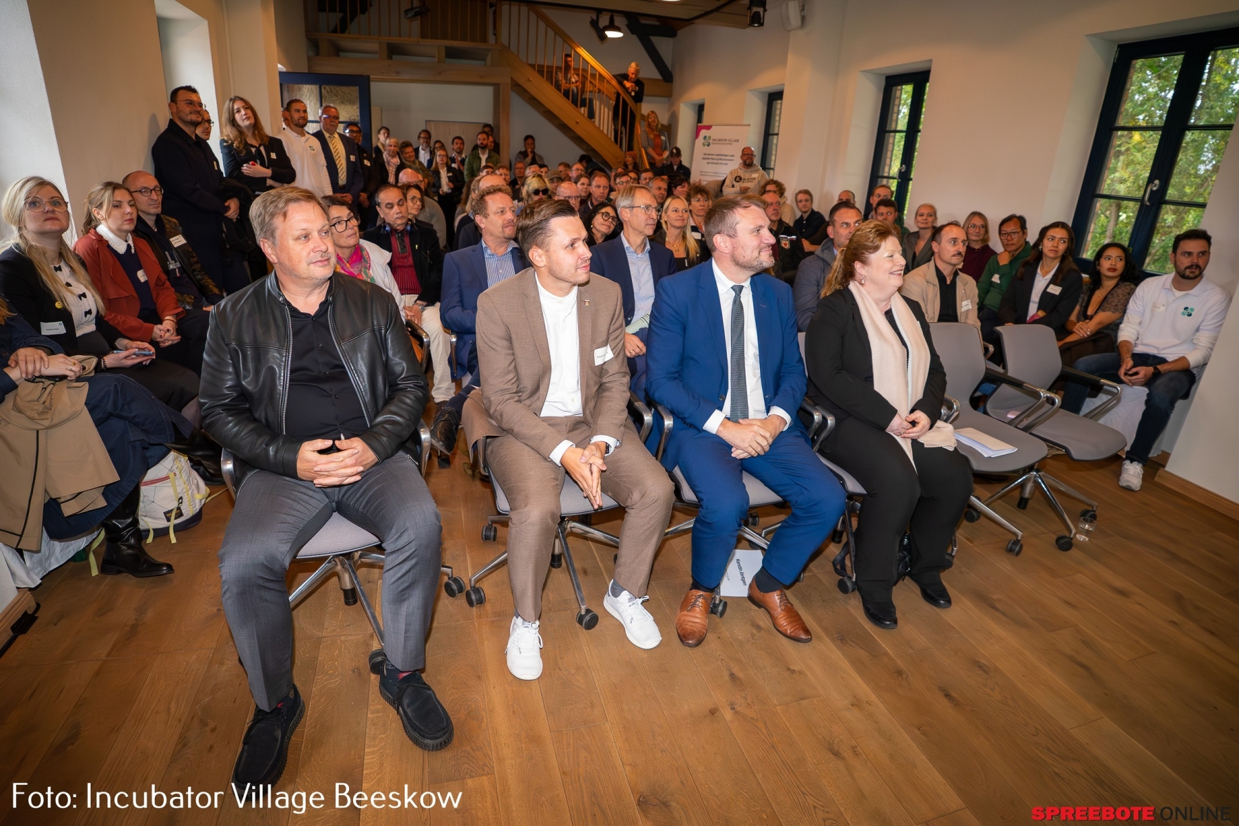 Das Incubator Village Beeskow hat am 9.Oktober offiziell seine Türen geöffnet. Mit der feierlichen Zeremonie in der Alten Tischlerei auf der Spreeinsel startet ein neuer Hotspot für innovative Start-ups, der die regionale Wirtschaftsentwicklung gezielt vorantreiben soll. Das Projekt ist eines von sechs offiziellen Startup-Zentren im Land Brandenburg und fokussiert sich auf technologieorientierte Gründungen in den Bereichen Digitalisierung, Nachhaltigkeit und regionale Wertschöpfung. 120 Gäste, darunter Vertreter aus Politik und Wirtschaft unterstrichen die hohe Relevanz des Projekts, das sich zum zentralen Treffpunkt für Gründungen und innovative Geschäftsideen entwickeln soll. Brandenburgs Wirtschaftsminister Daniel Keller, Landrat Frank Steffen, Bürgermeister Robert Czaplinski und ILB-Vorständin Kerstin Jöntgen würdigten in ihren Grußworten das Incubator Village als neue Gründerstätte und Impulsgeber für die Zukunftsfähigkeit der Region. In Impulsvorträgen teilten Colin Berr (Gründer von Mentor Lane) und Tim Jaudszims (Mitbegründer von Tiny Space) ihre Gründererfahrungen und fachliche Expertise mit den Gästen, darunter auch zahlreiche Gründer. Standortleiterin Sonja Schwarzkopf und der Leiter der Gründerprogramme Juan Pons stellten das Konzept des Excellerator-Programms vor. Ein Höhepunkt des Abends waren die Start-up Pitches, bei denen erste in Beeskow startende Gründerteams ihre Geschäftsideen vorstellten. Das anschließende Buffet nutzten Gründer und Investoren zum persönlichen Austausch.