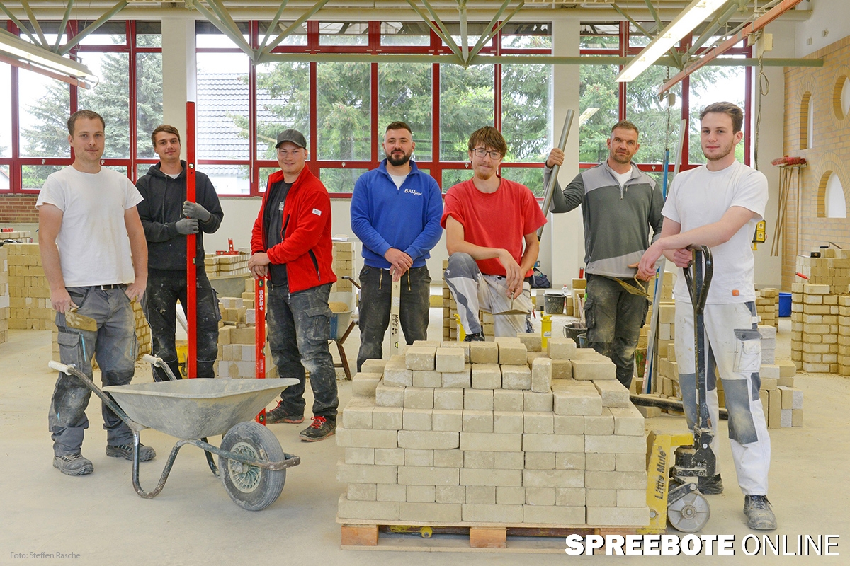 | Um ein meisterliches Niveau zu erreichen, trainieren die Maurer und Betonbauer ihre handwerklichen Fähigkeiten im Lehrbauhof Großräschen der Handwerkskammer Cottbus (HWK). So mussten sie einen Baukörper mit Verblend- und Sichtmauerwerk errichten, zur Meisterprüfung ist der Umbau eines Eigenheimprojektes umzusetzen. Dazu gehören die Kompetenz für das Zeichenprogramm, Kalkulation, Leistungsverzeichnis und die handwerklichen Fähigkeiten, um den perfekten Lösungsvorschlag vorzustellen.