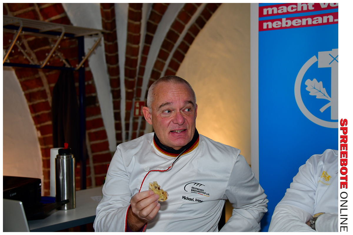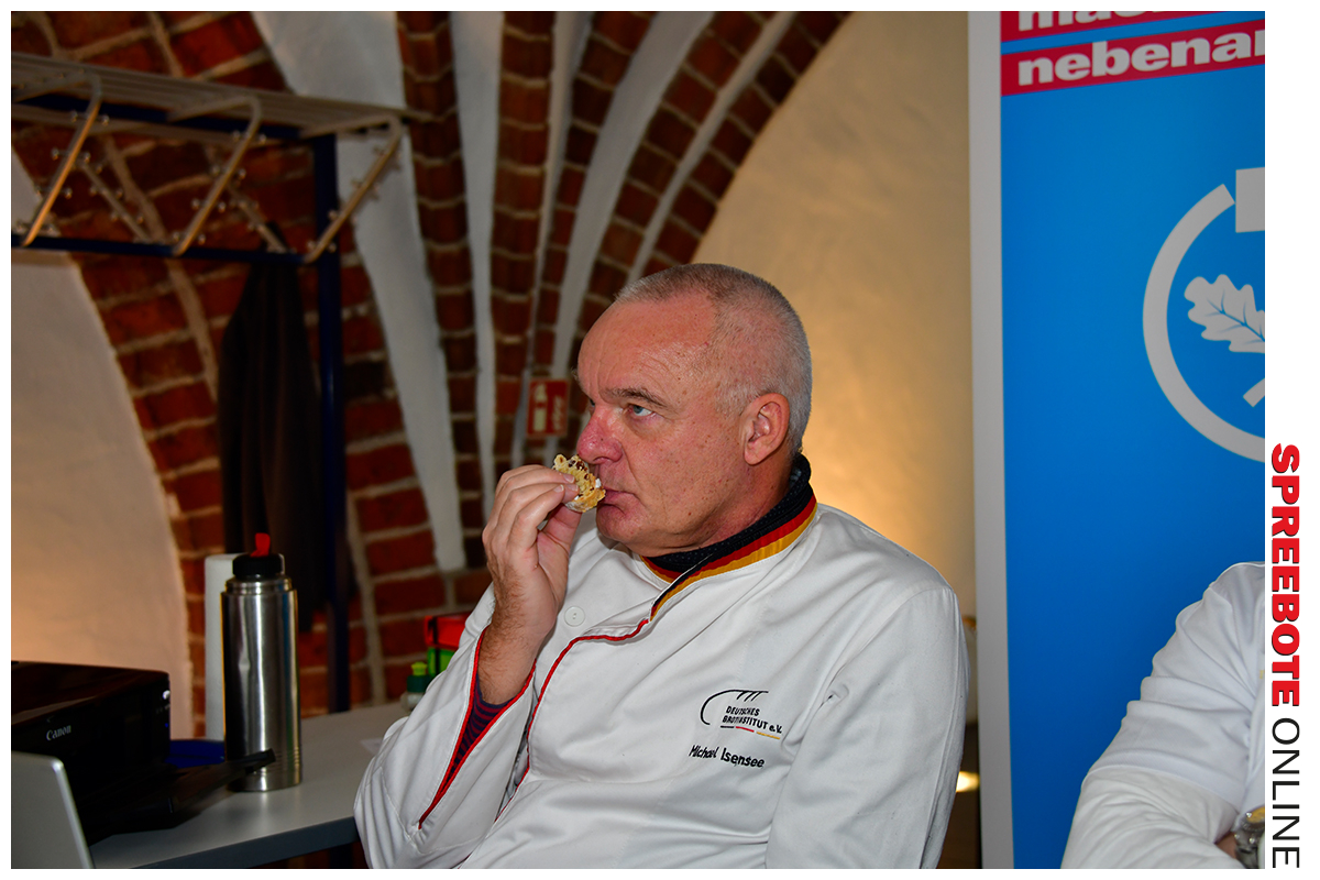 Bewertung fanden die Kreationen durch den langjährigen Partner in der Qualität, den Verein „Deutsches Brotinstitut e.V.“ mit Michael Isensee als unparteiischem Prüfer. 31 Produkte standen am Vormittag zur Bewertung bereit. Im fachlichen Gespräch stand der Innungsobermeister Uwe Mahlkow und der Altmeister Wolfgang Scharmer der Bäcker- und Konditoren Innung Germania im Prüfgespräch zur Seite. Es werden viele Kriterien dabei geprüft, die letztlich zur Prämierung und zum Aushängeschild der Güte in den Bäckereien ausgehängt werden. Da kann man schon stolz sein!
