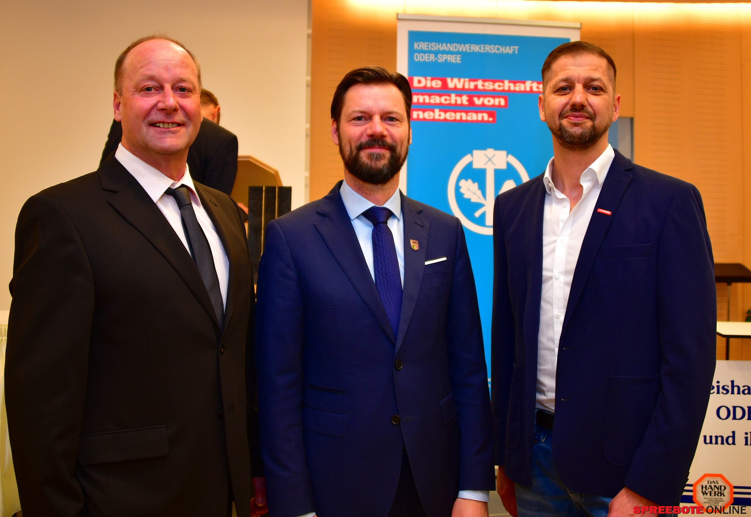 Zu den ebenfalls geladenen Gästen gehörte Landrat Rolf Lindemann, die Bürgermeister aus Fürstenwalde, Beeskow und Frankfurt (Oder) sowie die Innungsmeister, die im weiteren Verlauf die Übergabe der Gesellenbriefe übernahmen. Insgesamt sind 42 Lehrlinge zu den einzelnen Prüfungen in den Gewerken, Tischler, Maurer, Heizung & Sanitär, Elektro, Metallbau, Anlagenbauer und Lebensmittelhandwerk zugelassen worden. 35 von ihnen haben ihre Prüfung bestanden, unter ihnen gab es vier, die mit Bestnoten abgeschlossen haben. Einer glänzte sogar mit der vollen Punktzahl und sprach dann auch gemeinsam mit dem Kreishandwerks- und Obermeister Thomas Charlet die Gesellen im Zuge der Gesellenfreisprechung frei. In seiner Rede ging Thomas Charlet auf die Wichtigkeit des Handwerks ein: „Wir stehen vor großen Herausforderungen, wie dem Klimaschutz, der Digitalisierung, der Mobilitätswende – im Besonderen im Wohnungsbau. Für diese Aufgaben brauchen wir Lösungen, die es auch gibt, nämlich mit der Ausbildung junger Fachkräfte, die im Handwerker ihre Berufung finden. Das Handwerk bietet jungen Menschen beste Zukunftschancen. Dennoch“, so beklagte er, „ist es leider so, dass nur wenige junge Menschen den Weg ins Handwerk finden.“ Dies wäre ein gesellschaftliches Problem, denn man würde eher Wissen über Können stellen, es müsse dringlichst ein Umdenken stattfinden. Und die Wichtigkeit des Handwerks würde demnach auch zu wenig gewürdigt. „Wir brauchen junge enthusiastische Menschen, die ins Handwerk kommen und hier ihren Lebensmittelpunkt finden, die Entfaltungsmöglichkeiten sind in jedem Falle gegeben.“ An die Gesellen gerichtet, sagte er: „Nutzt eure Chance und packt mit an!“